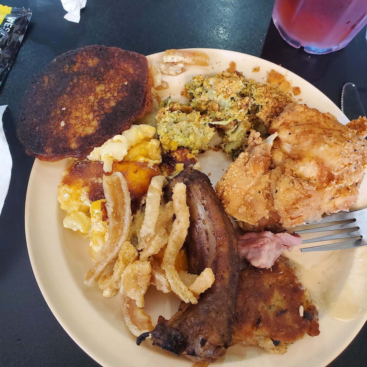 Here, the buffet offers a thoughtfully curated selection that embodies the depth of southern cooking: tender fried chicken full of crispy edges, slow-smoked BBQ with a kick of smoky sweetness, and hearty sides like mac and cheese that hold just the right creamy richness. Peach cobbler paired with a scoop of ice cream rounds out the meal in a way that feels both nostalgic and homely. The food doesn’t shout; it soothes, letting you create a plate that feels like your own private celebration of soul food tradition.